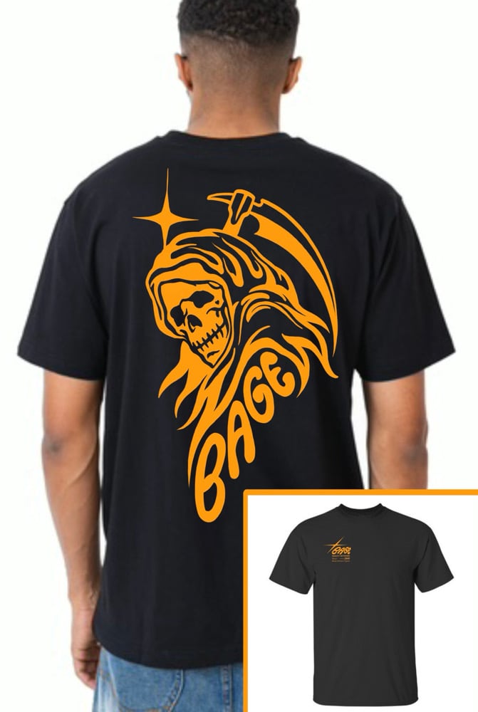 Black SCREEN PRINTED reaper tshirt with chest detail